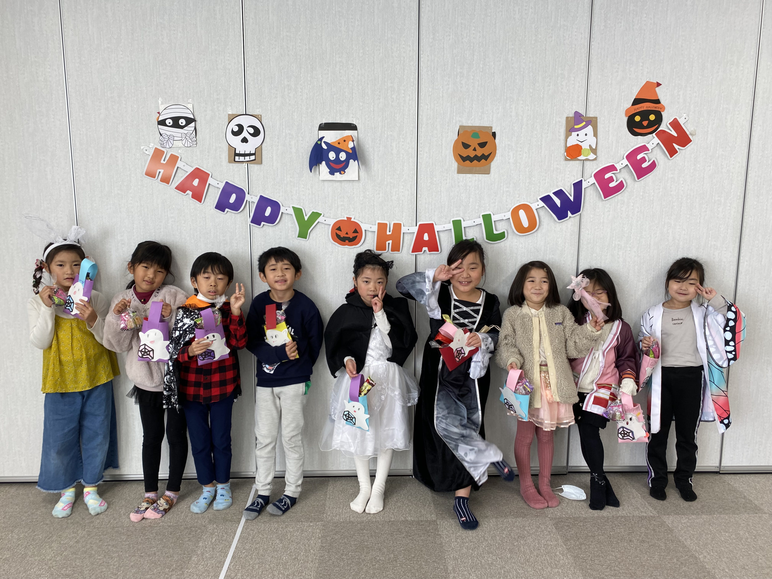 コロナ前のハロウィンパーティを経験している放課後イングリッシュ参加者は去年と今年、2年連続での規模縮小を経験しているので、思うこともあるだろうとは思います。しかし、「みんなで集まることができるだけでハッピー」だよと言う態度で参加してくれていたことも印象的でした。